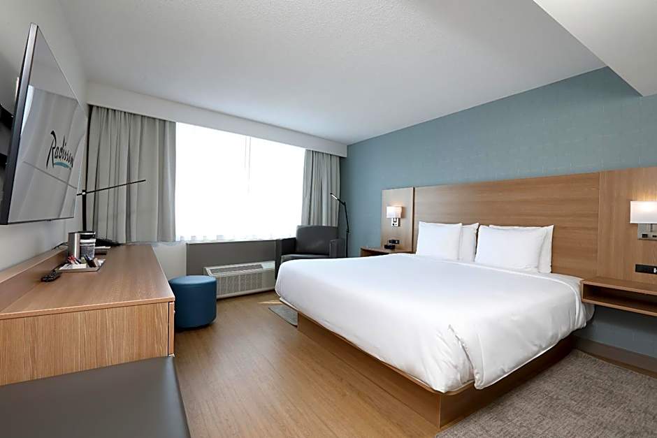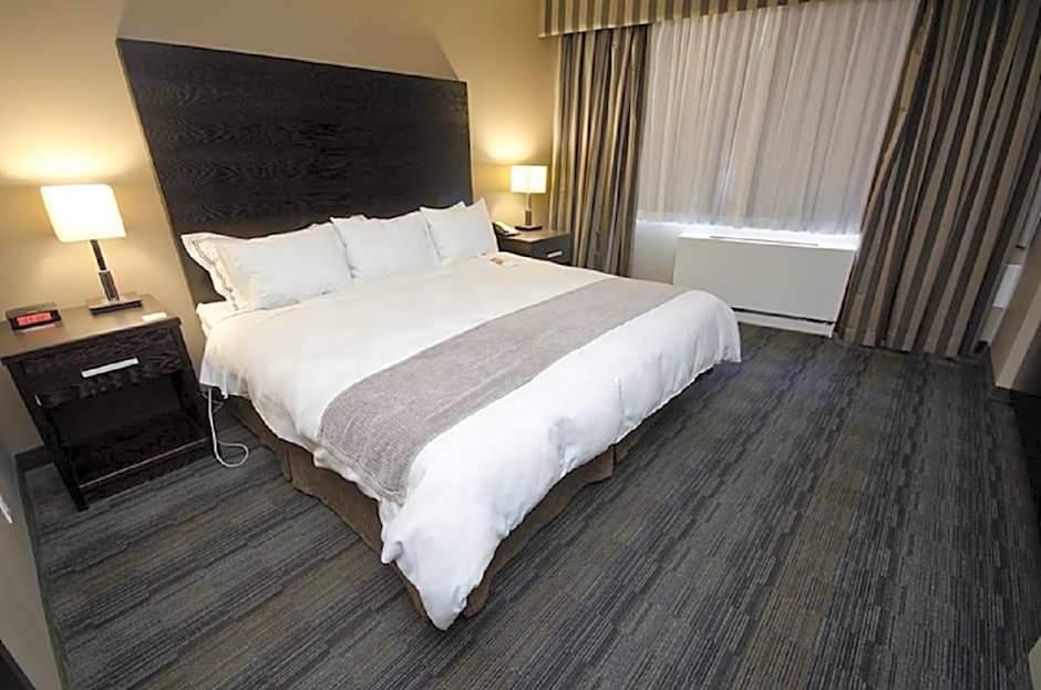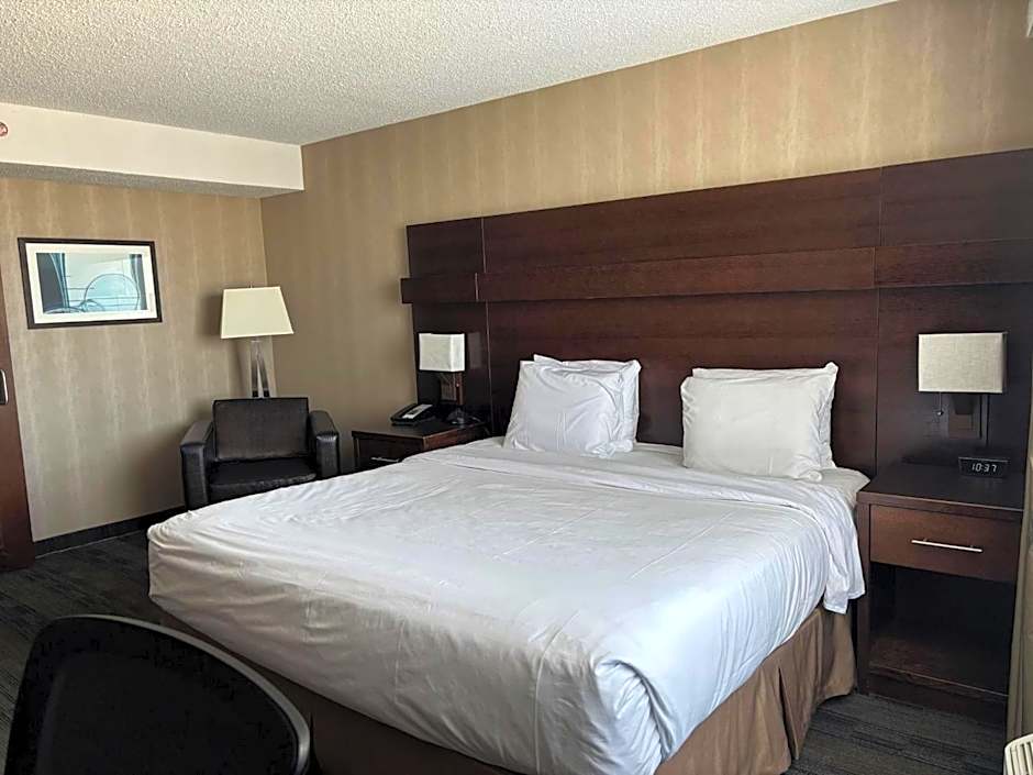 The suite features a TV with cable channels, a tea and coffee maker, executive lounge access, a seating area as well as city views. The unit has 1 bed.