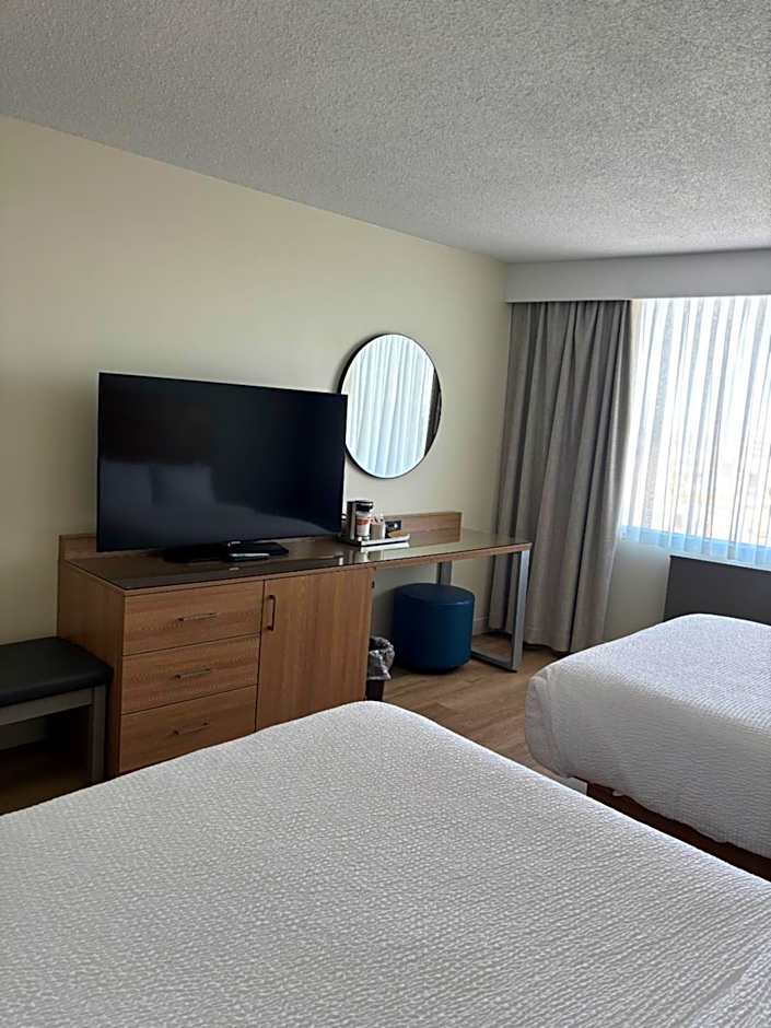 The suite provides a TV with cable channels, a tea and coffee maker, executive lounge access, a seating area as well as city views. The unit offers 2 beds.